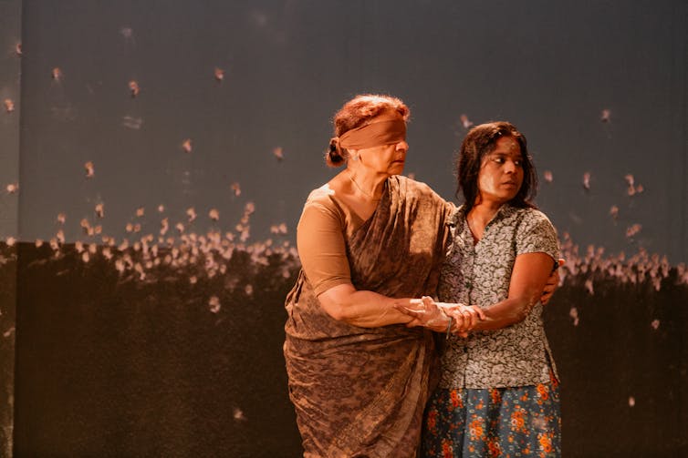A revolving floor symbolises the constant movement of the Tamil community, which endured 26 years of intense armed conflict. Accompanied by musicians Indu Balachandran and Arjunan Puveendran, the music takes the audience through constantly revolving worlds of loss and survival.