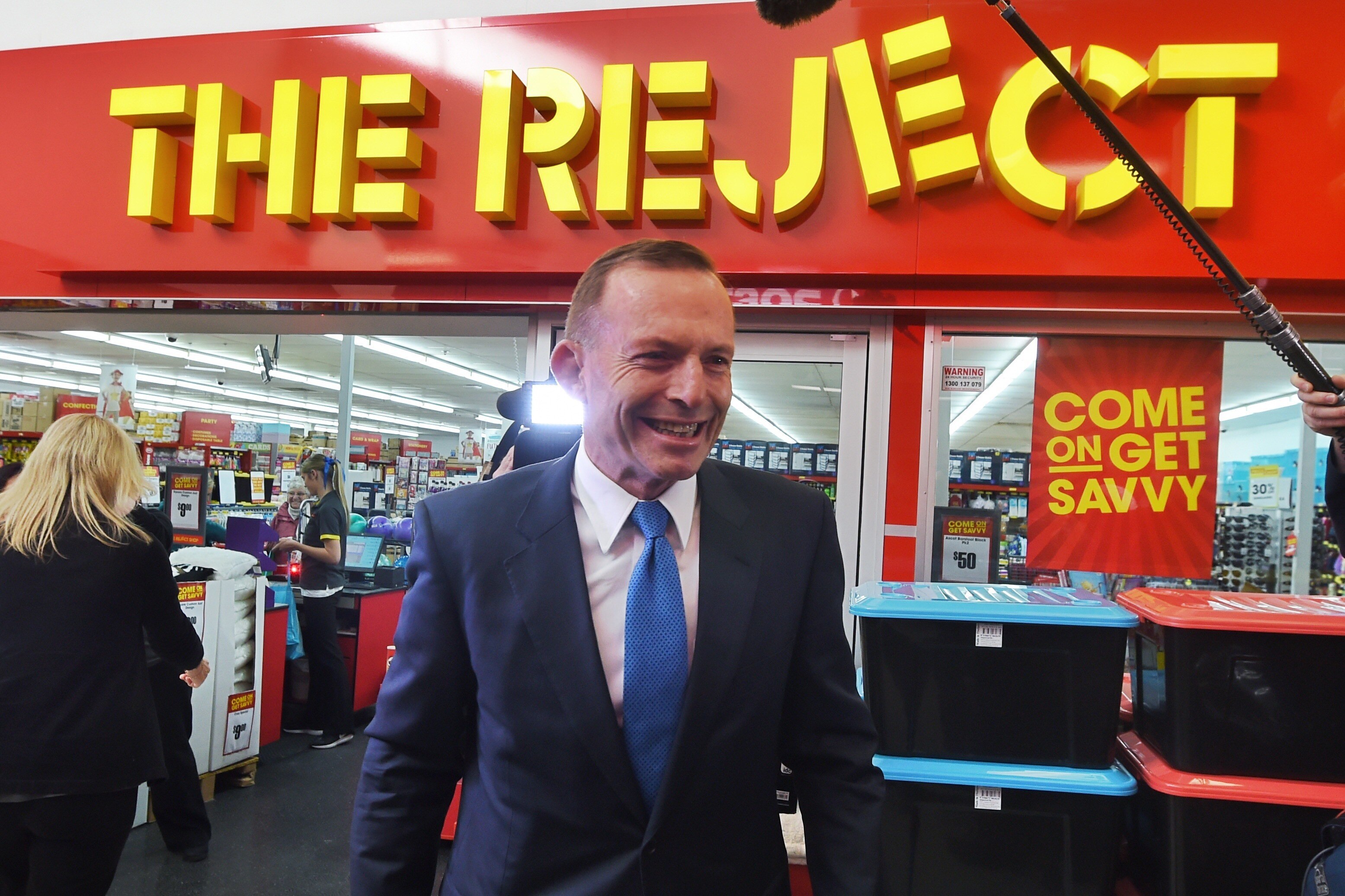 Photographers love nothing more than snapping a politician with an exit sign, or worse, "The Reject Shop".