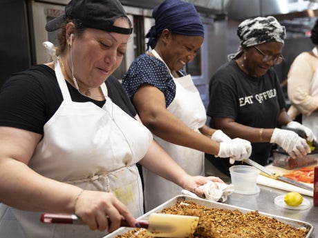 Via a partnership with the International Rescue Committee, the firm hires refugees who have been resettled in New York, mostly amateur chefs (some had restaurants in their home countries), and is currently staffed by a team hailing from Afghanistan, Iran, Iraq, Senegal, Sri Lanka, Syria and Venezuela.