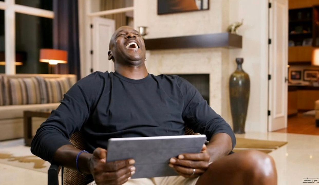 Thanks to ESPN and Netflix's 10-part documentary series The Last Dance, which covers Jordan's final season with the Chicago Bulls, we're getting a look at the the NBA legend in a completely different, more intimate light — and being a total savage at the expense of old rivals. Throughout the episodes that have aired or streamed so far, as Jordan is being interviewed in front of the camera, he's sometimes handed an iPad where he can watch videos of other players talk about their experience competing against him.