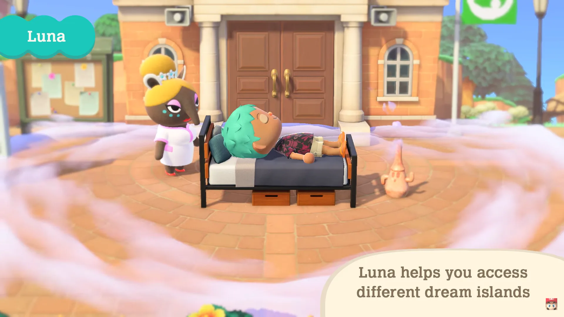 In New Horizons the feature returns when you decide to take a nap in your home. As you enter the dream realm, you'll be greeted by a character named Luna, who will let you visit dream versions of other islands.