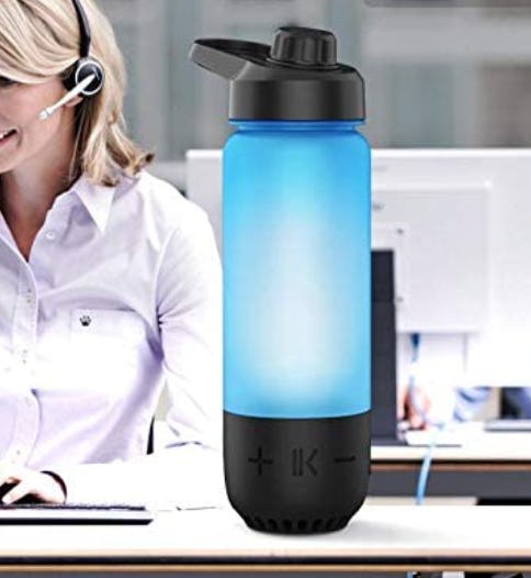 You can use this water bottle to stay hydrated, sure, but since it also has a built-in Bluetooth speaker, you can pair it with your phone to play music and podcasts wherever you go. As if that weren't enough, there's also a glowing light that illuminates the vessel, reminding you to stay hydrated throughout the day. In other words, this is truly the water bottle of the future.