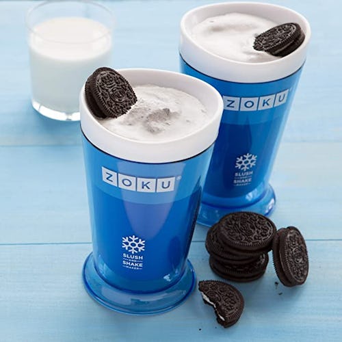 You don't need an electrical outlet to use this shake and slushy maker — just a strong arm. After freezing the inner core, simply add your ingredients to the cup and stir with the included spoon. After about seven minutes, you'll have a slushy treat to enjoy. Try it with juice, blended fruit, coffee, or even soda.
