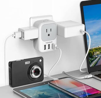 For tight spaces with only one wall outlet, this multi-plug extender really comes in handy. The device has four AC outlets and three USB ports, so you can conveniently plug in appliances and charge multiple electronics at once. More space-efficient than a power strip, this extender can be used at home or brought along while traveling.