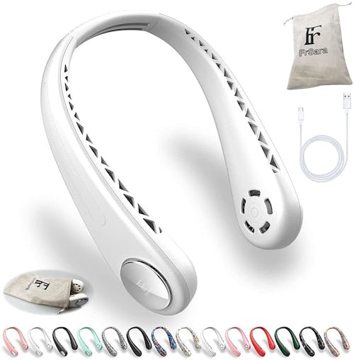 Whether you're traveling, commuting, or relaxing at home, this neck fan will keep you nice and cool, even when there's no a/c in sight. Running for up to eight hours on a single charge, the ultra-quiet, wingless design allows you to use this fan anywhere, and the three speed settings can easily be adjusted on the side of the silicone unit.