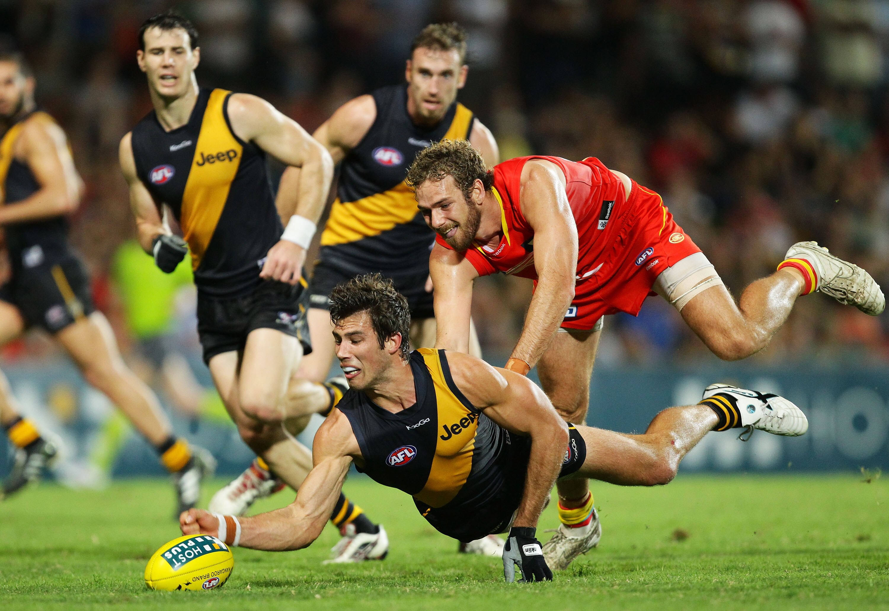 Josh Caddy (now retired) and Dion Prestia have since gone to the Tigers, while Brandon Ellis went the other way and is now a mainstay of a Gold Coast side on the rise. Riewoldt and Shane Edwards were the other players involved in both games — the former kicking three for the Tigers last weekend to go with his bag of five in Cairns.