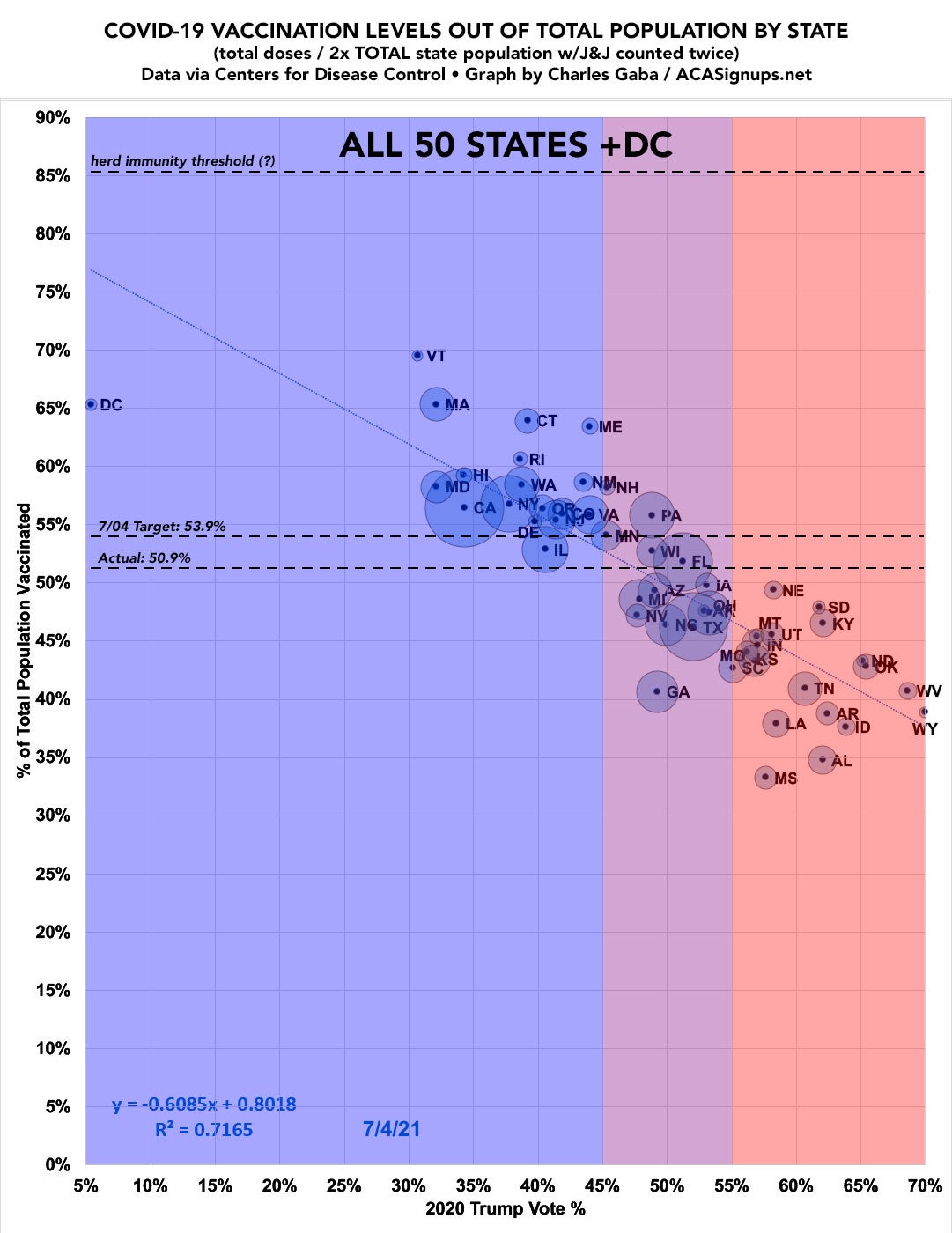The uncanny resemblance between the two shows a clear correlation between states with a lower vaccination rate and the states that backed Trump.