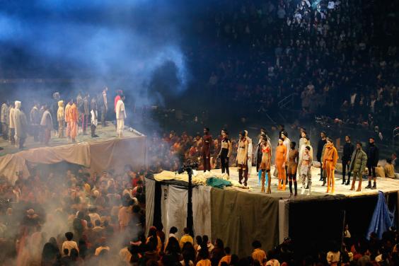Beside his longtime visual collaborator Vanessa Beecroft, the kaleidoscopic hip-hop artist treated fans to a listening party with ear-splitting bass while debuting Yeezy Season 3, his latest in the post-apocalyptic sportswear collection.