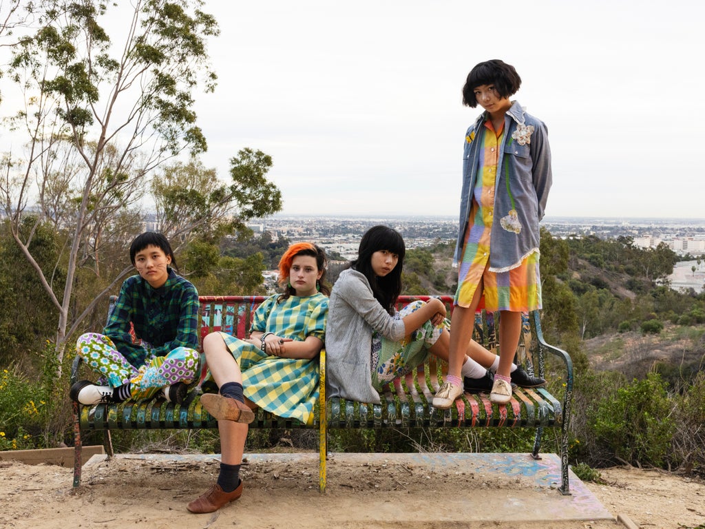 Political statements aside, The Linda Lindas are enjoying their youth – and a life outside lockdown. In February, they performed on Late Night with James Corden (“Eloise stole all the tea packets from the green room! Every flavour!” Lucia recalls, sending the others into hysterics.) But the best thing about fame, they agree, is having a rider. The way to The Linda Linda’s hearts is simple: snacks! Flamin’ Hot Funyuns and M&Ms are a priority. “Sometimes we’ll get chips and salsa,” says Lucia. “You know, to be healthy and all that.” Talk about growing up.