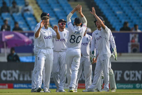 Ashwin (37) and debutant Dhruv Jurel (46) put on a stubborn eighth-wicket stand of 77 before England wrapped up the Indian innings.PTI8/10:Wood's impactful bowling