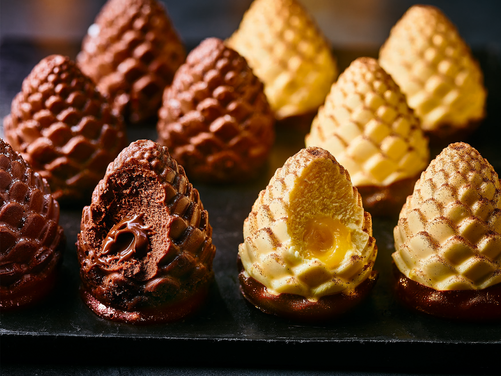 Now, for the desserts. Everyone's favourite caterpillar has been transformed into Christmas Cracker Colin the caterpillar (£15, Marksandspencer.com), decorated with chocolate crackers and popping candy. M&S’s chocolate pine cones (£17.50, Marksandspencer.com) are returning for a 10th time – this year, they’ll be available in a brand-new white chocolate version. Those looking for gluten-free options will be able to devour a slice of the Made Without wheat chocolate yule log (Marksandspencer.com).