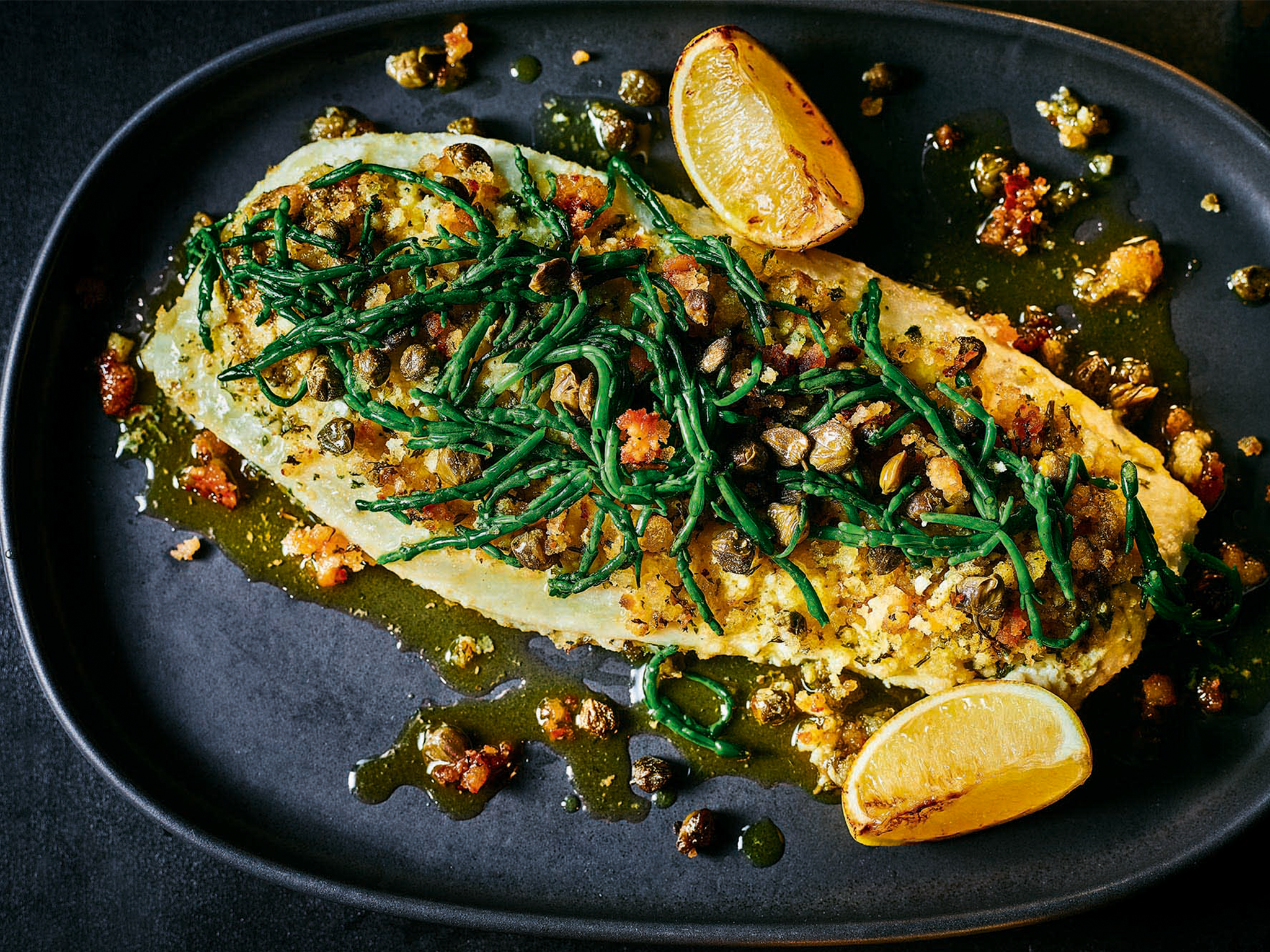 Beyond turkey, there’s also slow-cooked porchetta (£50, Marksandspencer.com), and, new for this year, halibut with caper brown butter and samphire (£50, Marksandspencer.com), and vegetarian ‘made without’ wheat butternut squash and cheddar tarts (£8, Marksandspencer.com).