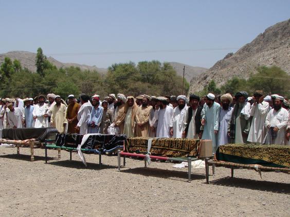 None of those killed in the five strikes had any links to Taliban, al-Qaeda or any other armed groups active in the restive region, which borders Afghanistan, Mr Jalal said.