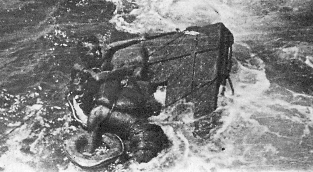 "I know one gent whom we picked up — he was by himself also, no raft at all — he was just floating in the water, and it was almost dark, night-time, and we saw him waving what I thought was a white hat or a hand, or something like that, and we came alongside and the only thing he had been waving was his own hand, they were so white from the salt water immersion that it looked like a white sheet of paper."