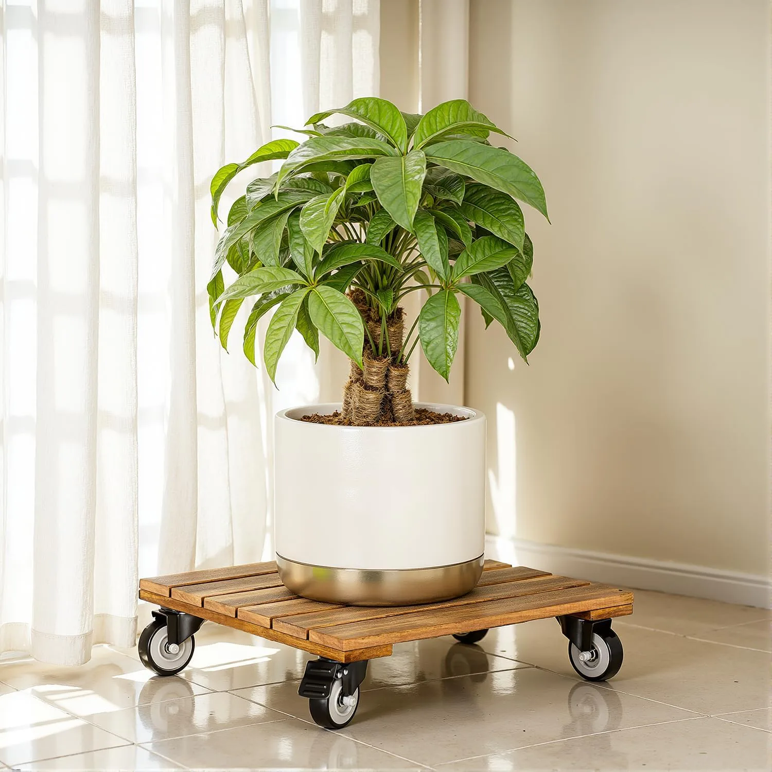 Whether your plants need sun or don’t need sun, this plant caddy will help you with this. The caddy (which is made from acacia wood) is on rolling wheels, allowing you to relocate it without any heavy lifting. The wheels lock once it's in place.