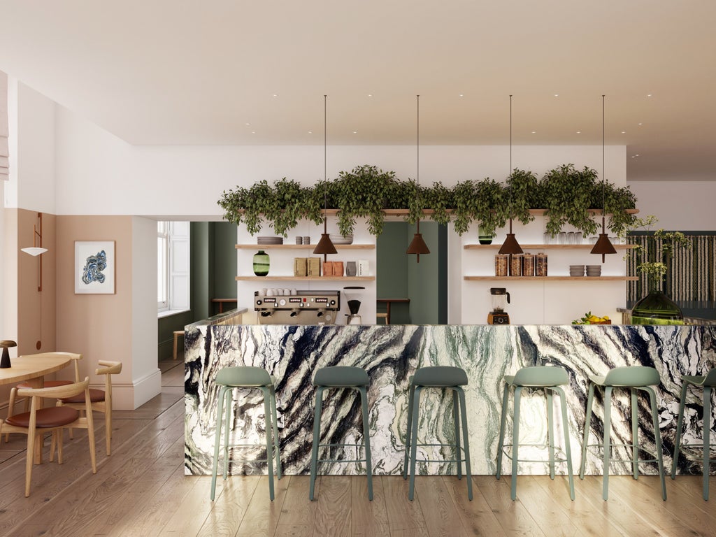 Community partnerships will be woven into the property’s fabric from the get-go, as will working with socially conscious businesses going forward. “The Kitchen” restaurant will serve a meat-free menu featuring the likes of saffron-pickled cauliflower and halloumi and burnt aubergine with tahini yoghurt. A quiet library space will have shelves lined with wellness, arts and nature-related books, and guests can head to an underground wellness area with fitness and yoga studio for GAIA spa treatments, and complimentary morning meditations.