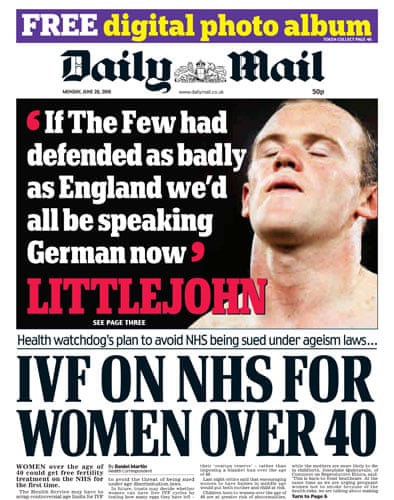 ‘If The Few had defended as badly as England we'd all be speaking German now’, 2010, Daily Mail