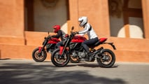 And about that engine, Ducati’s 890cc V2 isn’t just a shrunken-down superbike motor. It’s tuned specifically for the road, with smoother low-end manners and a flatter torque curve that suits everyday riding. Power peaks at 111 horsepower at 9,000 rpm and 67 pound-feet of torque at 7,250 rpm.