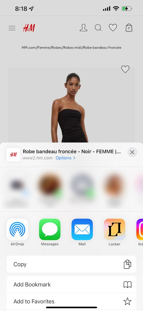 That brings me to importing products into the app. The first time I imported a product, I was on Instagram. I came across a dress in a story, and I wanted to save it. Once I opened the product webpage (still within the Instagram environment), I went to the drop-down menu in the top right-hand corner of the screen and tapped “share via.” From there, I saw the Locker icon. If you don’t immediately see the icon, you just need to press the "see more" icon, it will bring up a list of apps, and Locker should be there.
