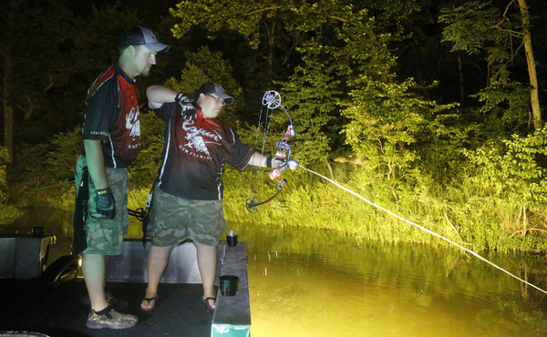 There were no monster fish shot that hot July night, when the Whiteheads hunted until about 2 a.m., though Doug Whitehead shot a buffalo of about 20 pounds. They didn't see as many as they'd hoped, either.