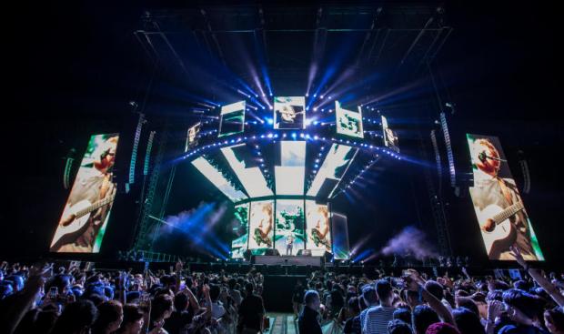 The evening opened with Japanese powerhouse rock band One OK Rock. Then, from a full band, the stage was cleared for the man of the evening -- the one-man band we've come to know as Ed Sheeran.
