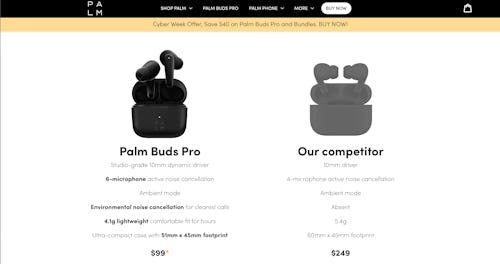 Steph Curry is still there for the moment. Funnily enough, his dedicated page on Palm’s website only mentions the Palm phone. He is featured on the bottom of the homepage for the Palm Buds Pro, however, quoted saying, “The Palm Buds Pro are the go-to for all my training sessions...”