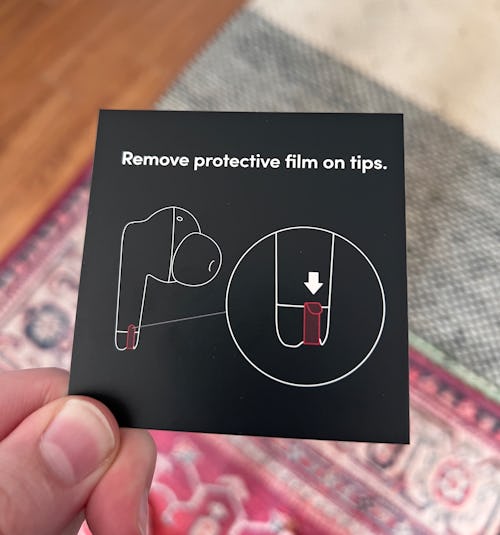 It starts with getting the wireless earbuds to turn on. At first, I thought that the earbuds simply don’t turn on when removed from the case. Then I found the teeniest, tiniest pieces of plastic covering the charging contacts on each earbud. Not only is this single-use plastic waste unnecessary, but it’s so hard to notice I would expect lots of people gullible enough to grab the Palm Buds will miss it too. Palm seems to agree. While the packaging for my initial unit didn’t mention removing any film from the wireless earbuds, my second unit did have a card in the box mentioning that.