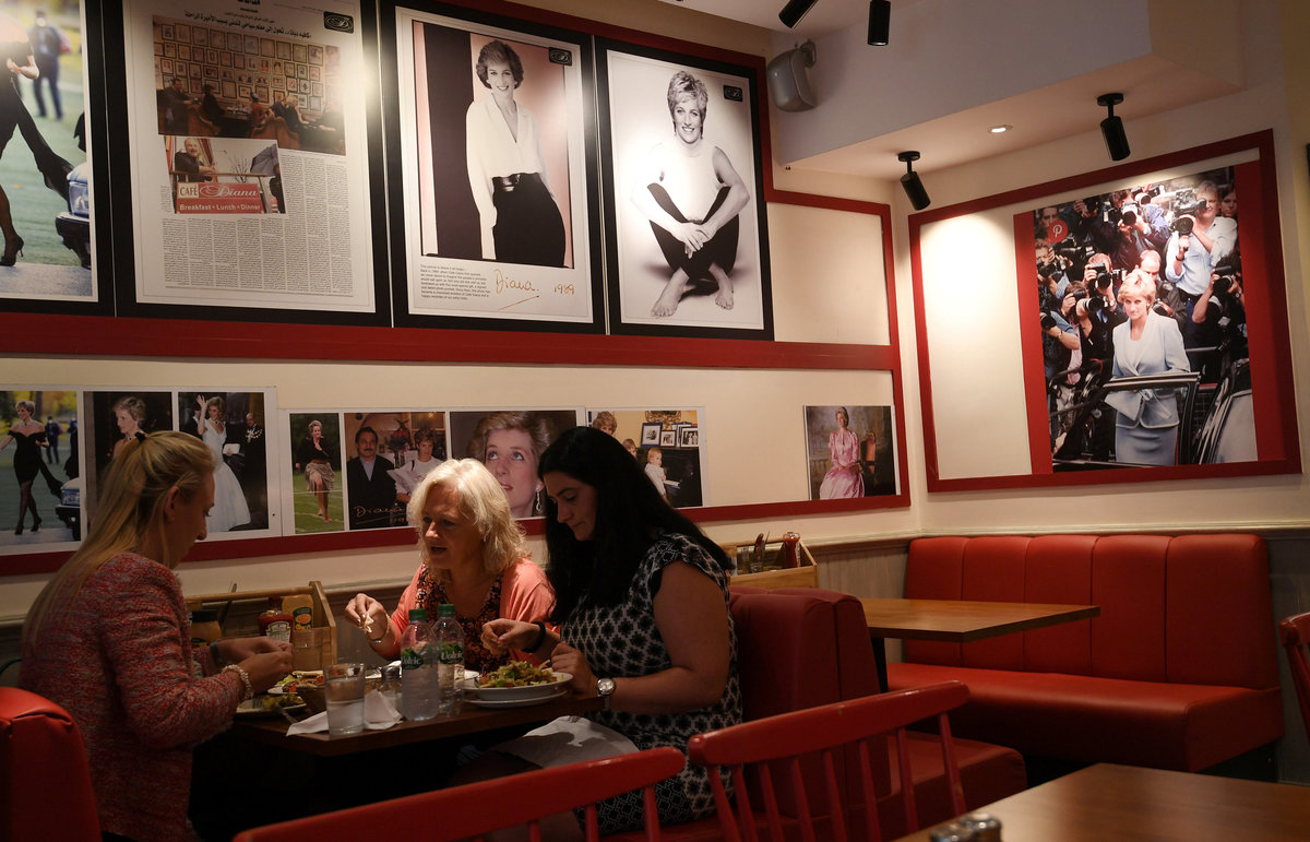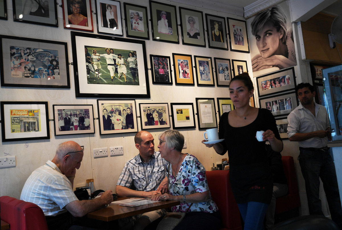 For him, celebrating her life is "business as usual" at the cafe where visitors can eat Diana salads or Diana burgers and where he said she used to stop by regularly.