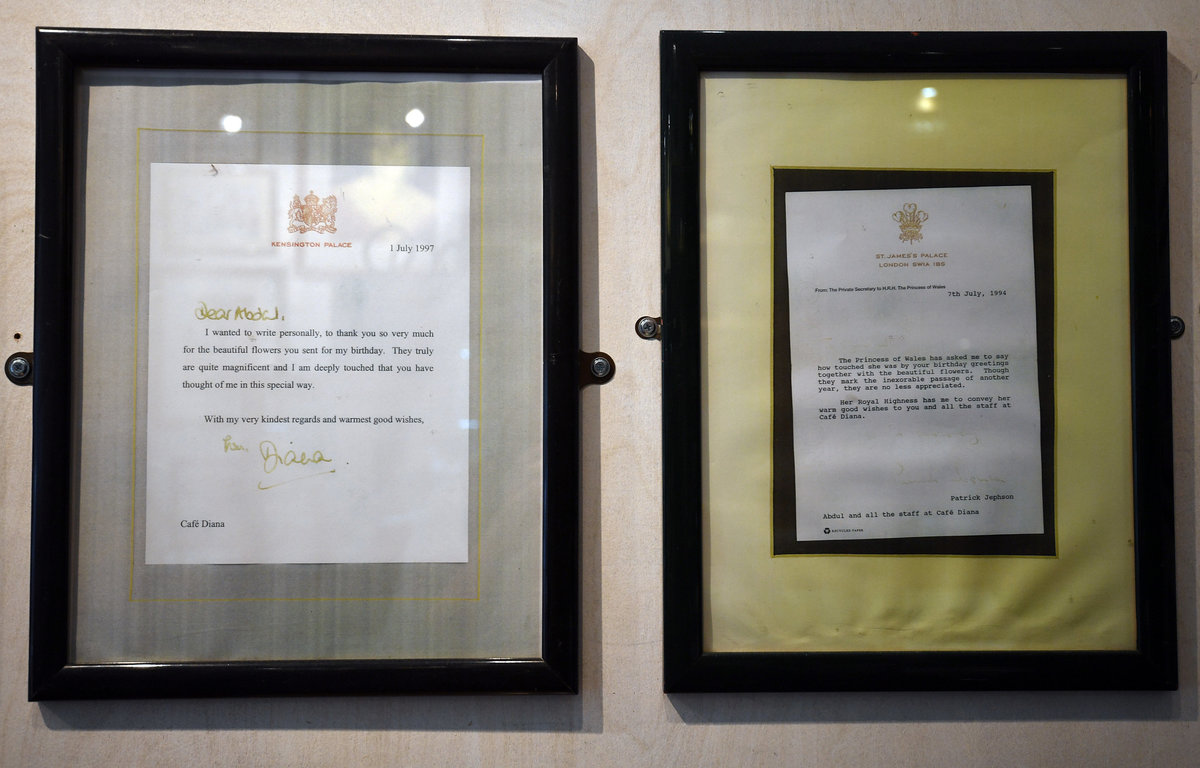 "My promise to her is to put this place as a tribute for her," he said of his cafe, set up in 1989, near London's Kensington Gardens, home to the palace where Diana used to live.