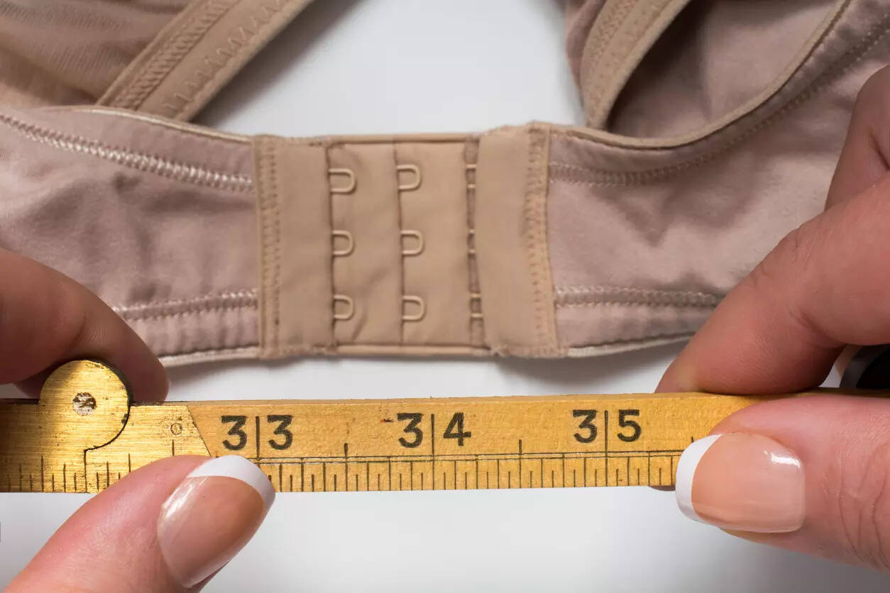 To know the cup size, stand straight and hold the tape to the fullest part of your breasts. Once you get the size, subtract the band measurement from the cup size.