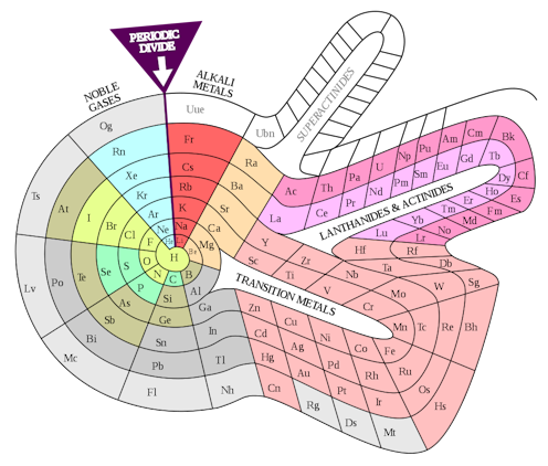 That’s not to say folks haven’t tinkered with layouts, often as an attempt to highlight correlations between elements that aren’t readily apparent in the conventional table. There are literally hundreds of variations (check out Mark Leach’s database) with spirals and 3D versions being particularly popular, not to mention more tongue-in-cheek variants.