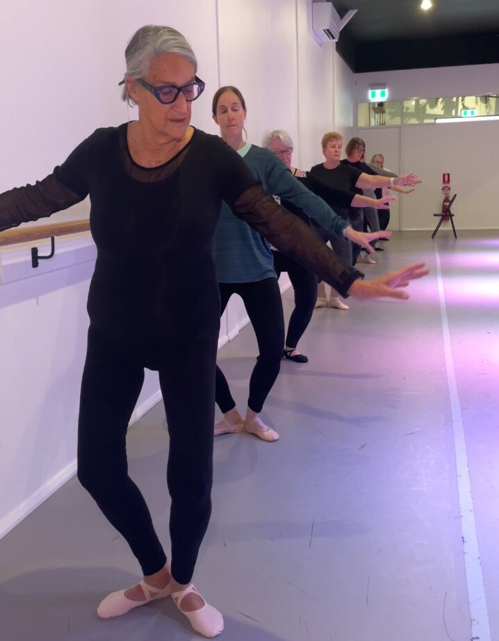 Teacher Rachel Ward tailors the ballet moves to suit her mature-age students in the Silver Swans class.