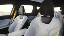 There’s a new Storm dark grey exterior color that replaces the outgoing Thunder, and the text graphics on the front doors are slightly different. Inside, almost everything stays the same. Inside, the seatbelt design helps differentiate the three trims, with solid black for the base Rear motor, black with Swedish gold stripe for the Dual motor, and full Swedish gold for the Performance version. Moreover, the environmentally friendly MicroTech upholstery in Charcoal and repurposed aluminum details, which were previously offered as an optional extra, are now part of the standard kit.