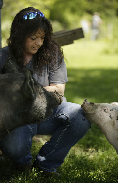 Santorineos knows about raising animals. At a friend's rural Illinois farmhouse, she grows pigs and poultry that they eventually will have slaughtered.