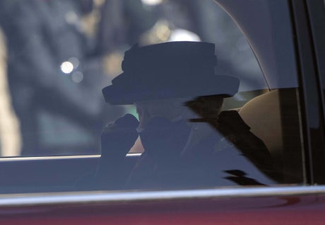 During the procession, Lady Susan accompanied the Queen in the State Bentley as they followed the hearse carrying Philip’s coffin from Windsor Castle to St George’s Chapel where the service is held.