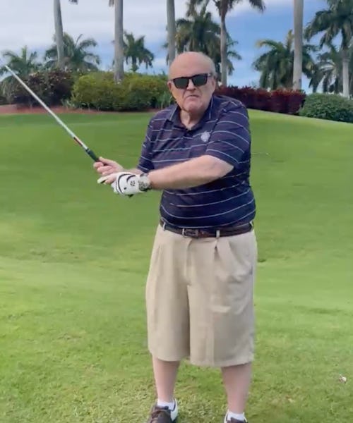 This is truly one of the single funniest things Giuliani — a man who farted in a courtroom and adjusted his junk in a Borat movie — has ever, ever done. Every single moment here is perfect, from the gargantuan khaki shorts to the dialogue (“If you wanna have a really nice conversation ... ” ) to the fact that he seems to be swinging at nothing to his reference to the “link be-LOW” even though it’s actually a-BOVE. I’ve watched this clip a dozen times now, and each time I discover something new and horrifying and hilarious about it.