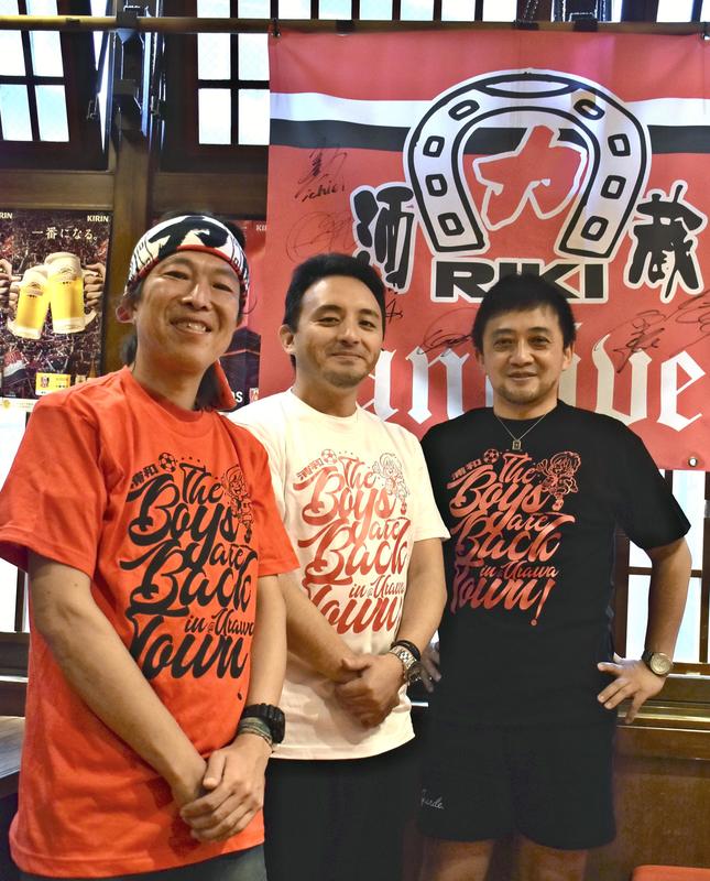 The project got started when Toshihiro Imai, 41, the manager of the main location for Sakagura Riki, a Japanese-style pub, near Urawa Station, and 48-year-old design company president Shuichi Kakuta, who has also served as group leader of a Reds fan group, discussed doing something about the dismal situation.
