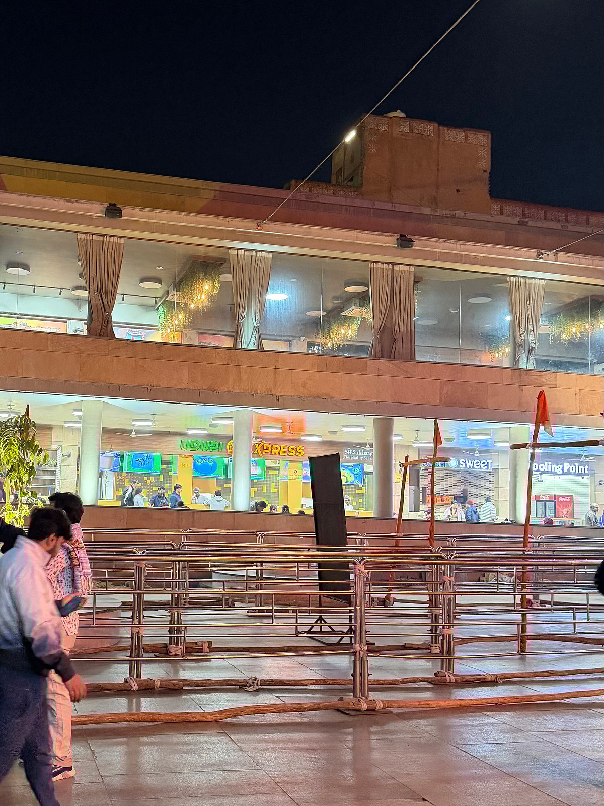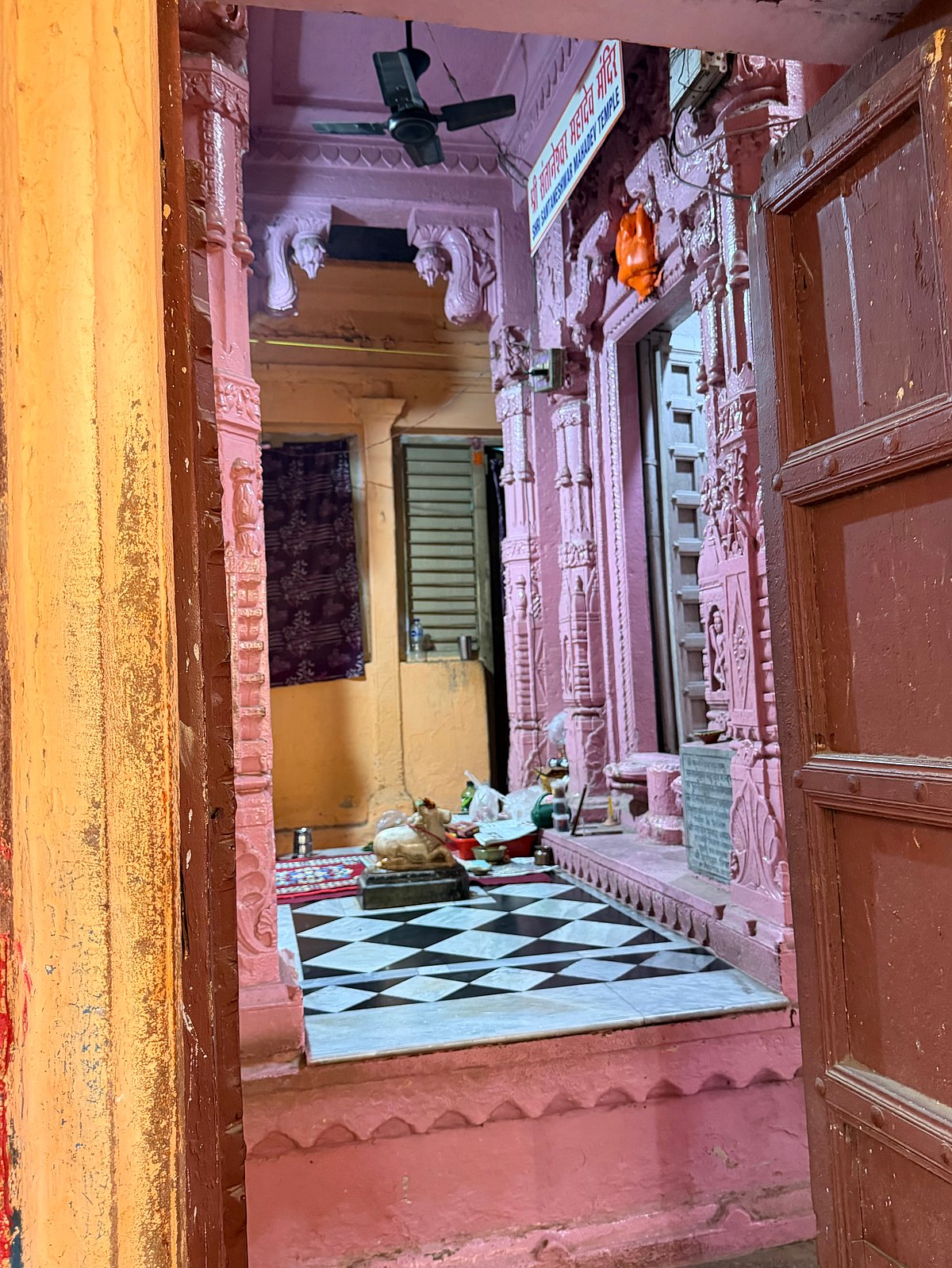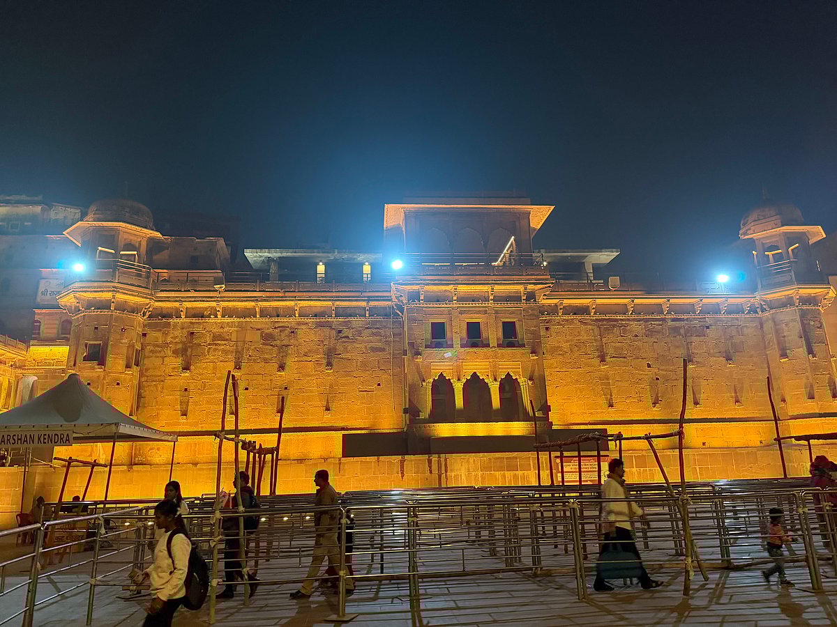 Getting in requires lining up for tickets, standing over an hour or more in a queue before you inch your way in, in a path made by tightly circumscribed barriers that snake across the courtyard but allow no deviation, winding their way for the darshan that is a literal half-second before a minder physically hustles you out through barriers to the exit.