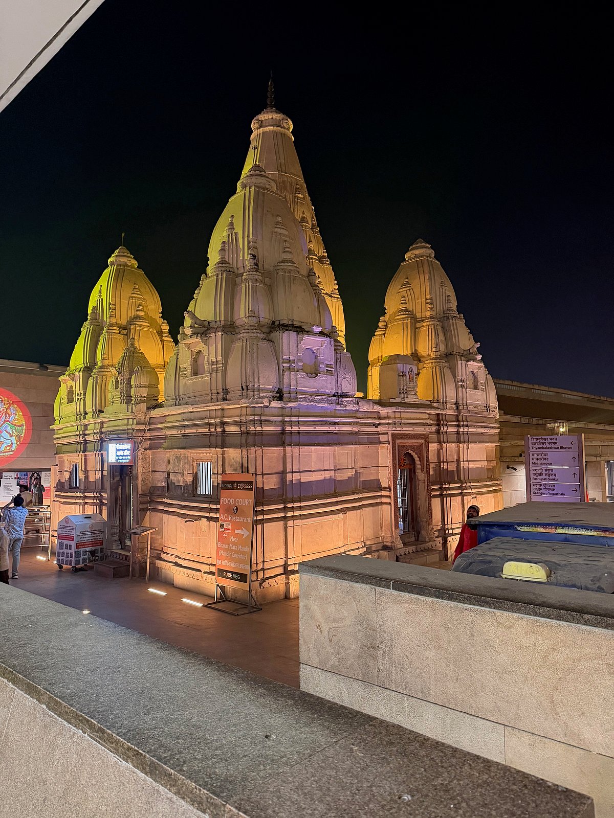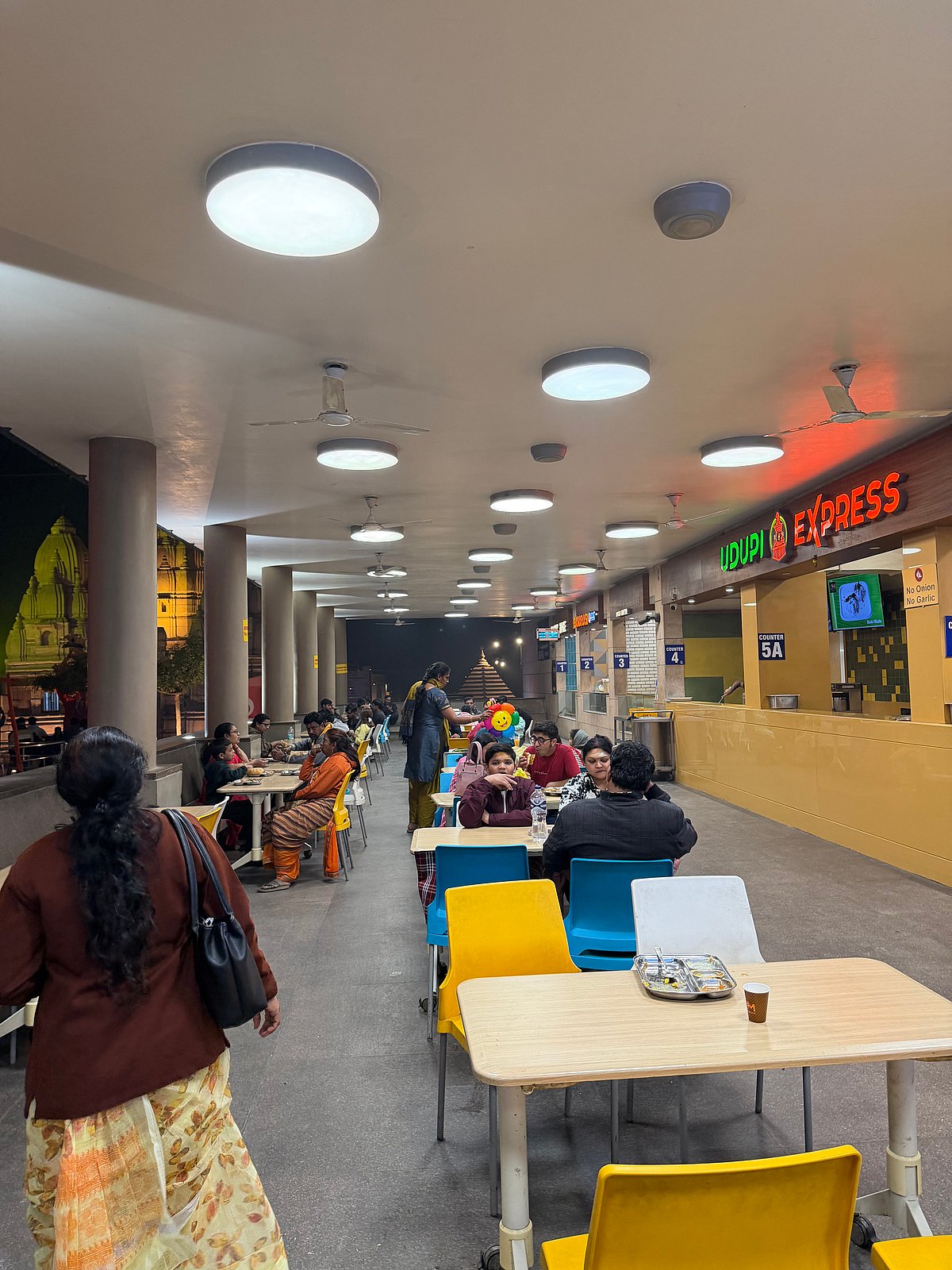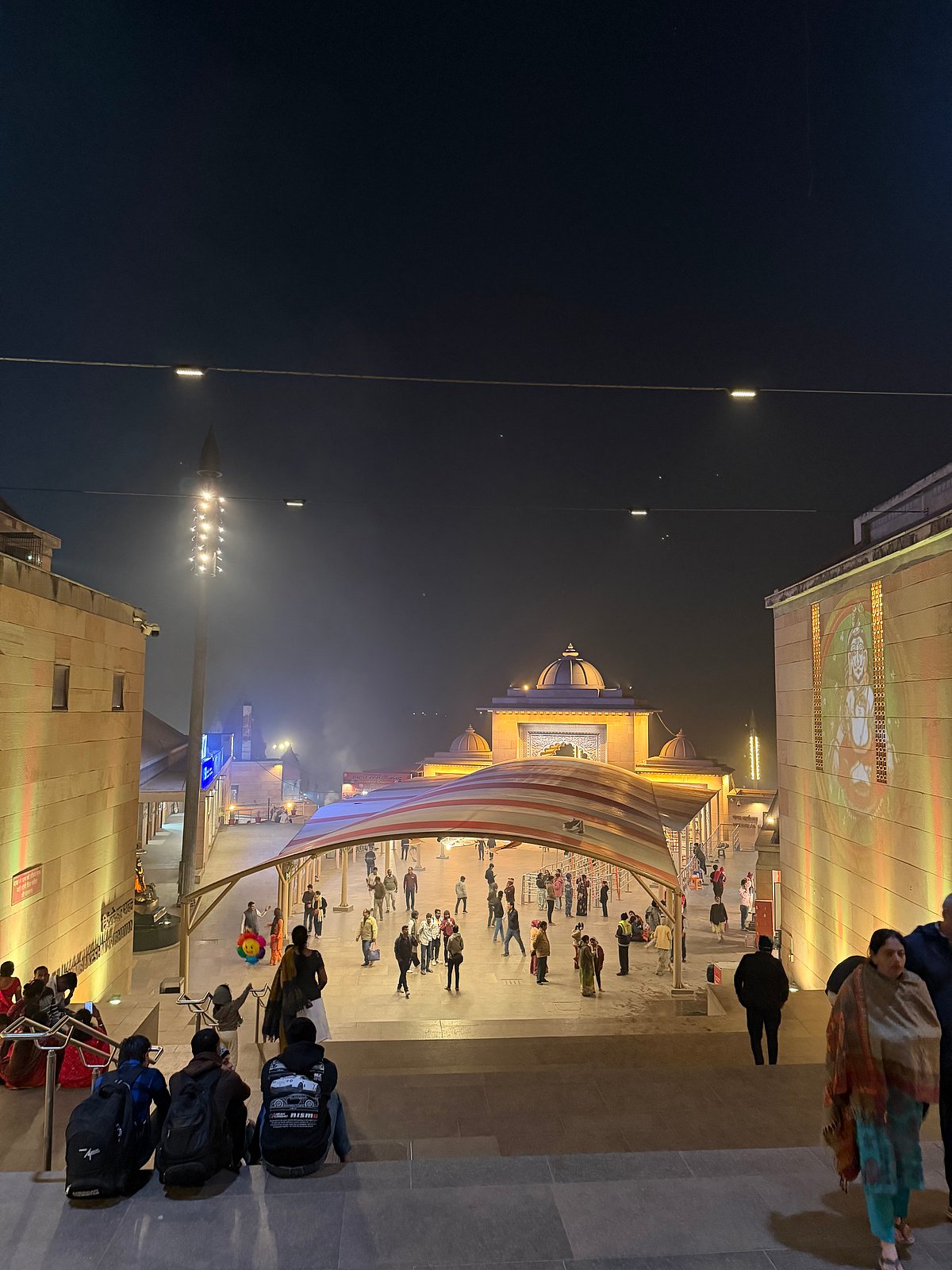 Brightly coloured god projections illuminate the walls at night for an immersive feel. The non-stop recorded hymns on loudspeaker are set to soothing rather than rousing. Interactions are mostly hands-free and digital. The effect is a spa-like, ‘virtual’ atmosphere. The messaging is Hindu Lite – easy to digest, bite-sized doses of modern religiosity.