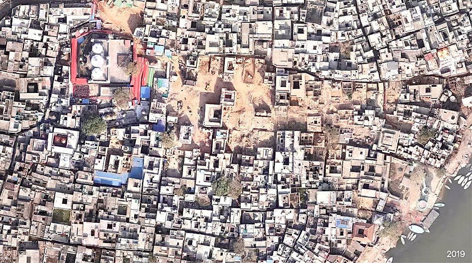 In Kashi Vishwanath, the “dream vision” was a direct path to the Temple from the Ganga even though the temple still doesn’t face the river nor was it ever placed to have direct access to it. It became a planning ‘imperative,’ for which the complete demolition of 500,000 square feet of historic galis described in 300 year-old texts, 400 homes, 143 temples and two ghats - Khiraki and Jalasen – was considered absolutely ‘essential’.