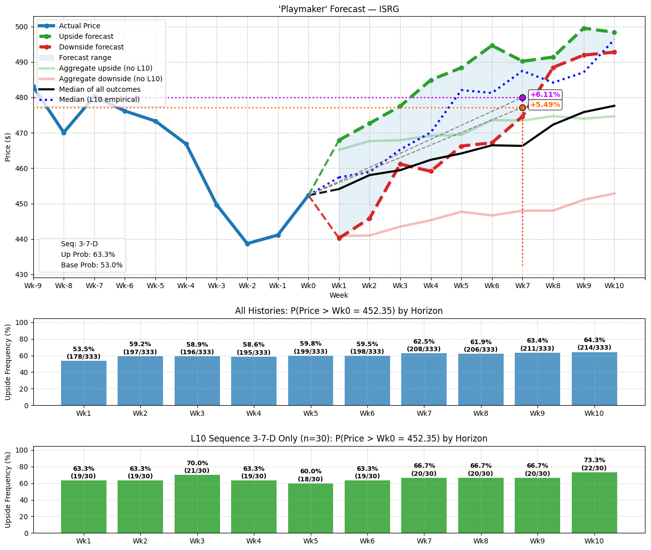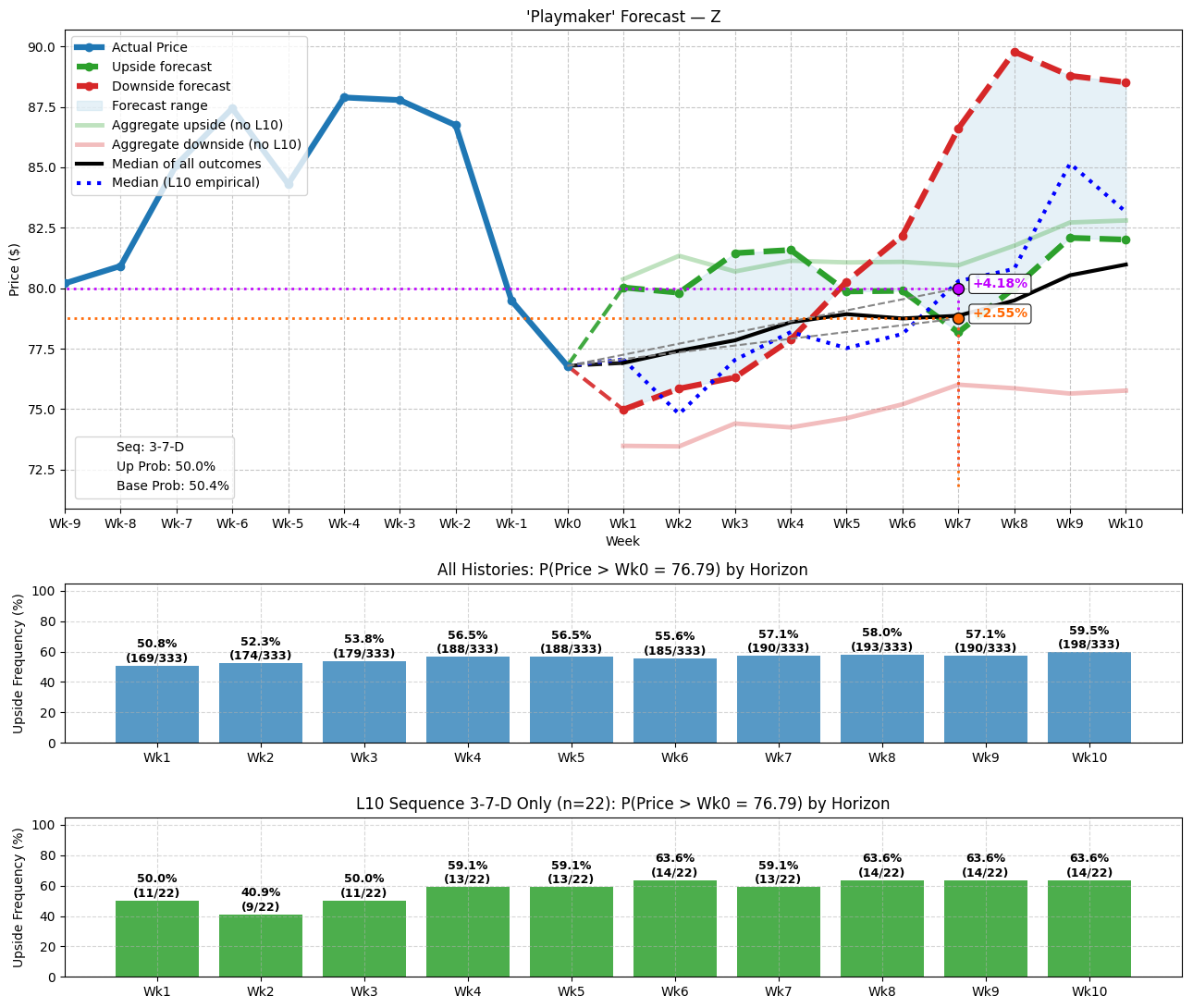 Fundamentally, that’s what I’m offering with the sequencing logic — a descriptive model of what could happen in the future using past analogs. Specifically, I am hypothesizing that the distinct attributes of the last 10 weeks of price action can be instructive in how the next 10 weeks may pan out.