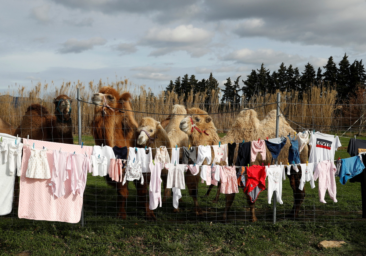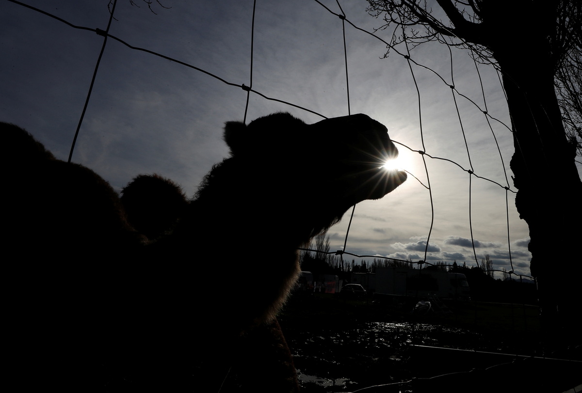 Camels stand near laundry on a clothesline at the Royal Circus home base in Senas as circus shows remained shut as part of COVID-19 restrictions measures to fight the coronavirus disease outbreak in France, February 9, 2021. REUTERS/Eric GaillardA camel is pictured at the Royal Circus home base in Senas as circus shows remained shut as part of COVID-19 restrictions measures to fight the coronavirus disease outbreak in France, February 9, 2021. REUTERS/Eric GaillardWilliam Kerwich, owner of the Royal Circus and President of the Circus and Shows Animals Union, feeds Molly the hippopotamus at the circus home base in Senas as circus shows remained shut as part of COVID-19 restrictions measures to fight the coronavirus disease outbreak in France, February 9, 2021. REUTERS/Eric GaillardA camel is pictured at the Royal Circus home base in Senas as circus shows remained shut as part of COVID-19 restrictions measures to fight the coronavirus disease outbreak in France, February 9, 2021. REUTERS/Eric GaillardSophie Kerwich, wife of William Kerwich, owner of the Royal Circus and President of the Circus and Shows Animals Union, poses with her parrots at the circus home base in Senas as circus shows remained shut as part of COVID-19 restrictions measures to fight the coronavirus disease outbreak in France, February 9, 2021. REUTERS/Eric Gaillard