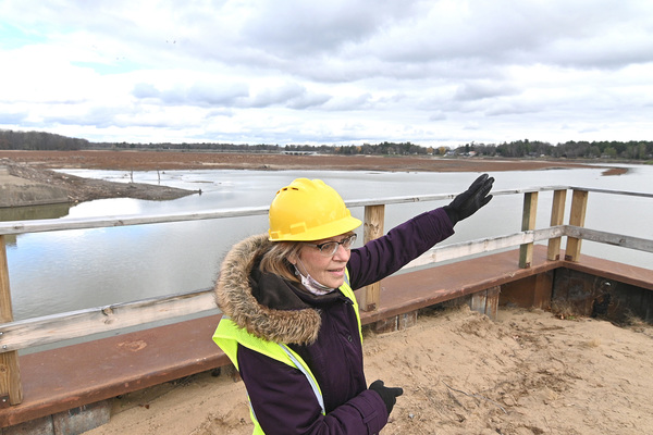 "The mud was like ice skating," said Porte as she led an informal tour of the area near Sanford Dam and onward into the village center. "I wore boots for three months."