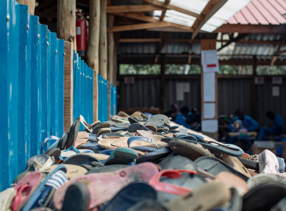 Flip-flop offcuts are swept up and bagged up by Rwandan refugee Jacqueline, 39, to fill mattresses for a project run in partnership between Ocean Sole, UN Refugee Agency and the International Red Cross. Jacqueline, who fled the genocide in 1994, explains: “It’s amazing that refugees like me are now able to sleep on mattresses rather than the ground.”