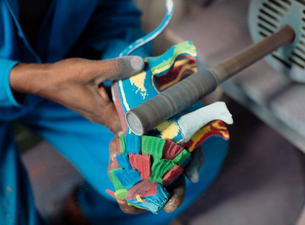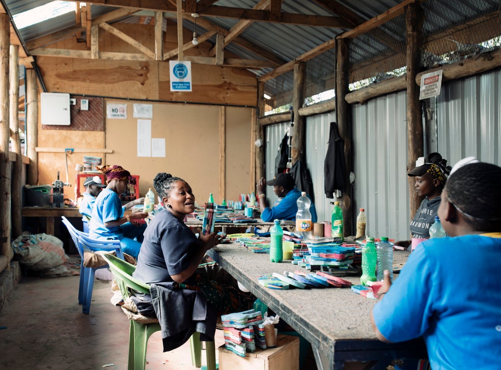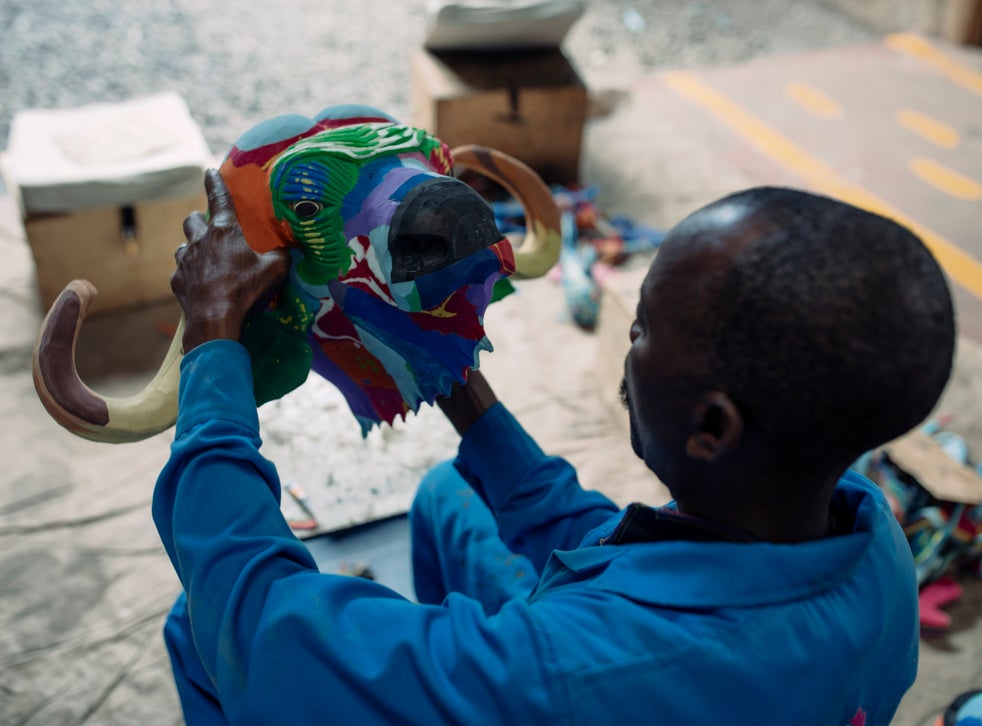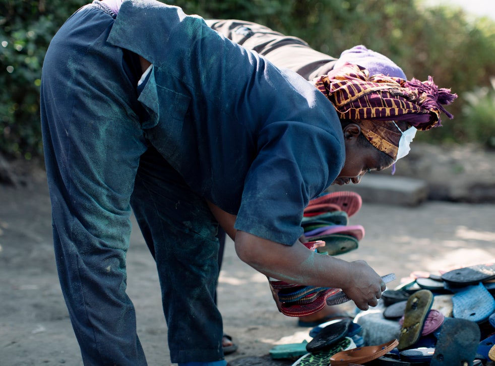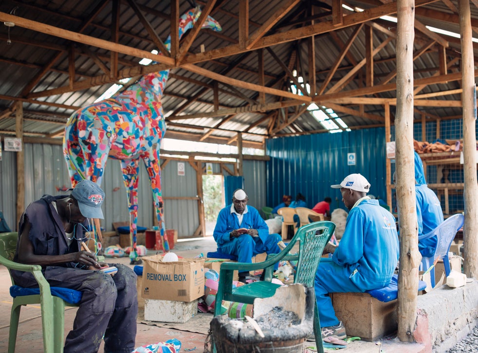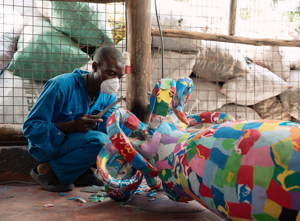At its HQ at Karen Village, Nairobi, flip-flops are unpacked, washed and glued into blocks ready for carving. The artists, many of whom were former woodcarvers made redundant when the deforestation of ebony and mahogany was outlawed, sit quietly, focusing on their masterpieces: lions, elephants, rhinos, and giraffes, which are then sold across 33 countries.