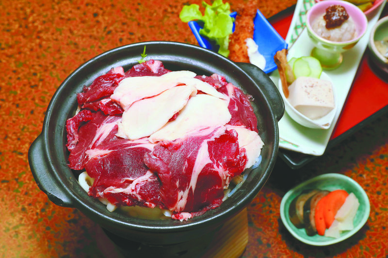 Ikuo Sagawa, 68, a co-owner, said, "Fat is the life of a wild boar." He freezes high-quality wild boar meat that is locally produced and serves it throughout the year. The meat of the wild boar, which is cooked in a hot pot with Chinese cabbage, enoki mushrooms, shirataki (konnyaku noodles), etc., is soft and moderately chewy, and the fat is surprisingly clear and full of umami. The meat is unexpectedly refreshing and the spiciness of gochujang (Korean chili paste) serves as a secret flavor.