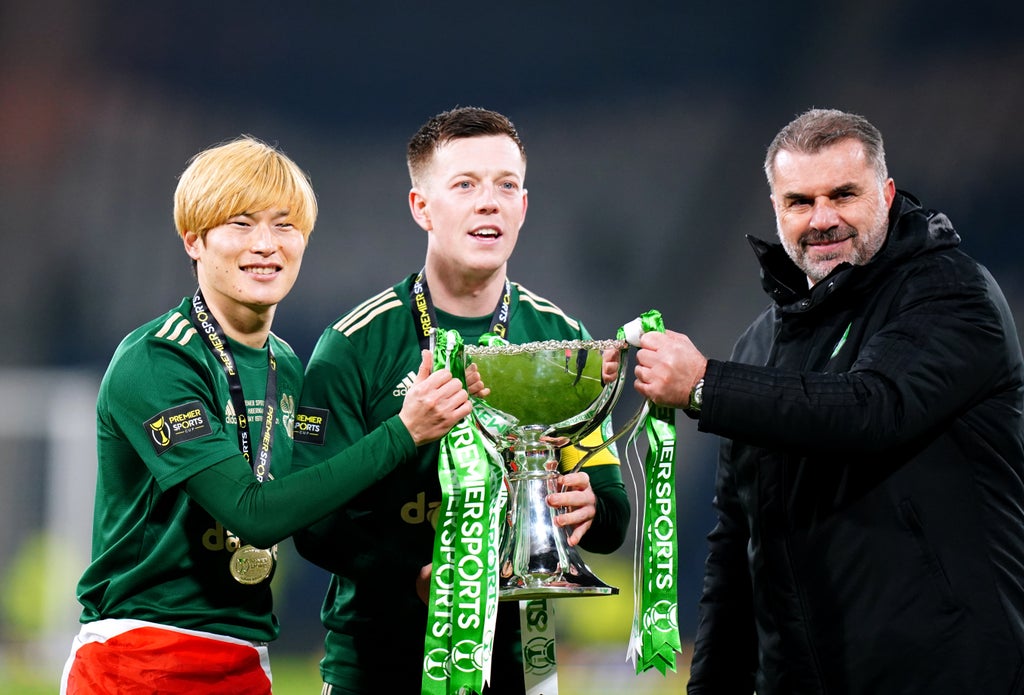 Kyogo Furuhashi hit a Hampden double as Celtic came from behind to beat Hibernian 2-1 in the Premier Sports Cup final.