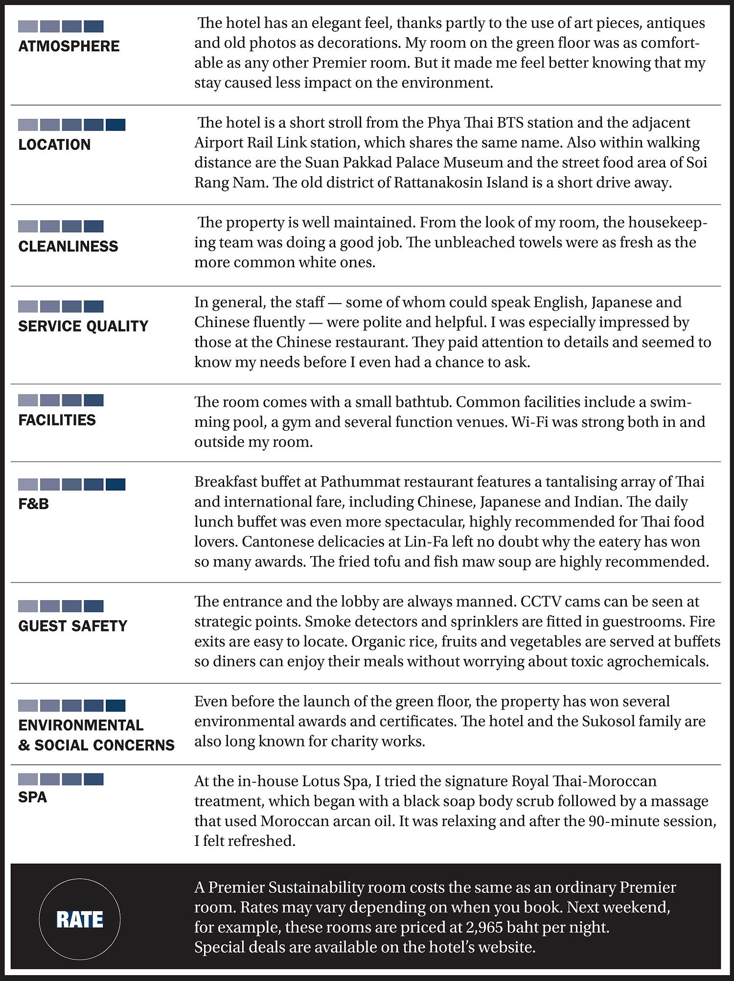 One of Bangkok's legendary hotels, this property, which bears the name of the family that owns and runs it, boasts 500 guestrooms and suites. Using several eco-friendly initiatives, the hotel has made its 12th storey greener than the rest. For example, beddings, towels and shower robes on this floor are washed without bleach. Although it results in such fabrics not being conventionally bright white, it helps reduce the use of hazardous chemicals.