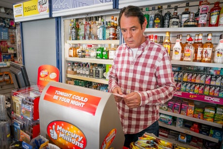Keeley takes the week’s ticket to check at the newsagent, where the lottery machine starts cheering and Frank (Neil Morrissey) informs her that she’s won £500. She takes the cash from him without bothering to confirm the numbers or to check that he’s not lying and they have in fact hit the jackpot. This oversight lets the plot crank into gear. Frank collects the winnings, fakes his own suicide – citing his dog dying – and hightails it. Seemingly at no point does he stop to consider whether the lottery authorities, the cops, or his fiancee Sheryl (Gaynor Faye) might be suspicious of him collecting £27m and topping himself over a pet.