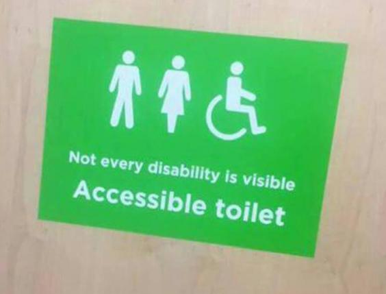 The signs, placed on accessible toilet doors, will urge customers to remember not all disabilities are visible. They are intended to make people with conditions like Crohn's disease, autism, anxiety, and inflammatory bowel disease feel they can use disabled facilities without facing criticism from other shoppers.
